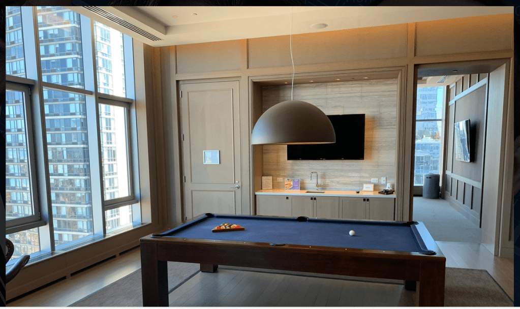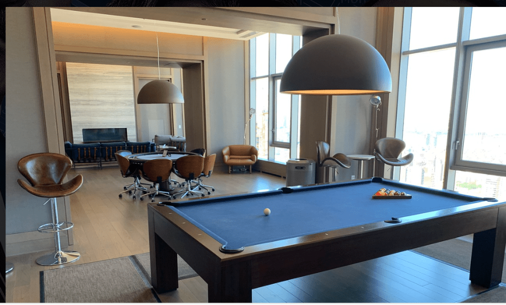 100 Apartment UWS Upscale, High End, contemporary, hi-rise, big windows, roof top, roof deck, midtown views, home theatre, pool table.