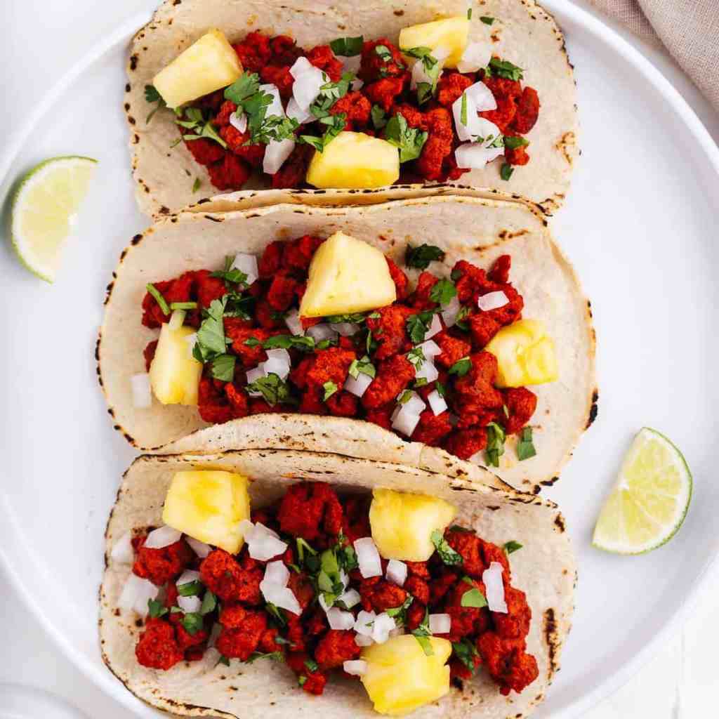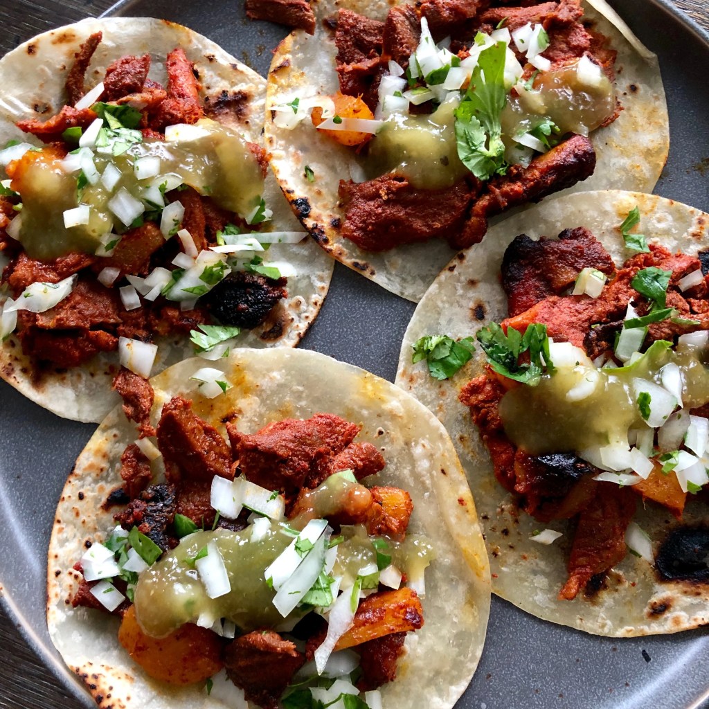 These Mexico City favorites are tacos filled with spit-grilled pork, seasoned with pineapple and spices, and topped with fresh cilantro and onions. Each bite is a flavor explosion of sweet, spicy, and savory.