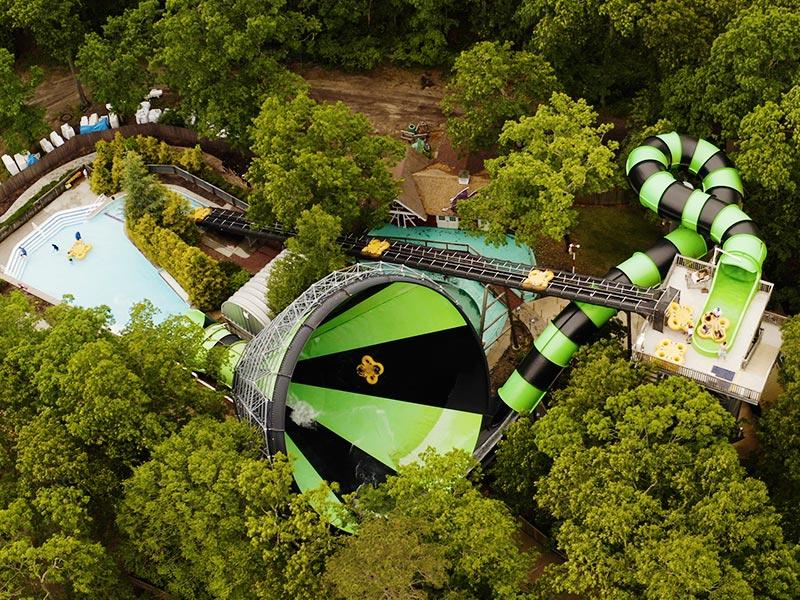 For those looking for a daring adventure, Bombs Away will get your heart racing. This near-vertical drop slide will leave you breathless as you plunge down at high speeds. If you’re seeking family-friendly excitement, Alien Invasion offers the perfect balance of thrills for adults and kids, with a giant tube slide that spirals down into a huge funnel.