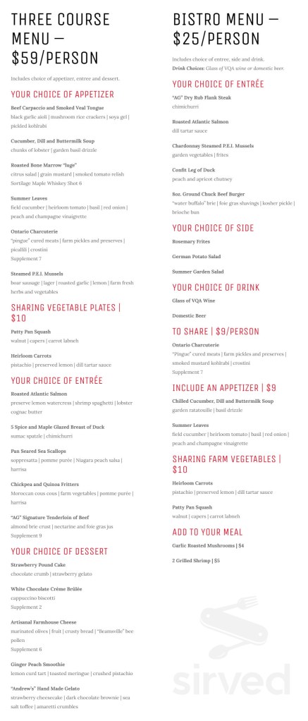 - Why It’s a Must-Visit: AG Inspired Cuisine is known for its farm-to-table approach, with ingredients sourced directly from local Niagara farms. The menu is seasonal, showcasing fresh produce, meats, and wines from the region.