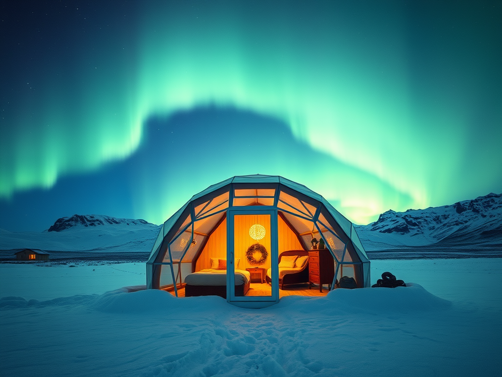 Iceland’s Northern Lights: Imagine cuddling up with your partner under the stars, watching the dazzling Northern Lights dance across the sky. Stay in a glass igloo or cozy cabin in Iceland for the ultimate romantic night under the auroras.